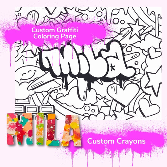 Personalized Graffiti Coloring Page & Crayons Bundle