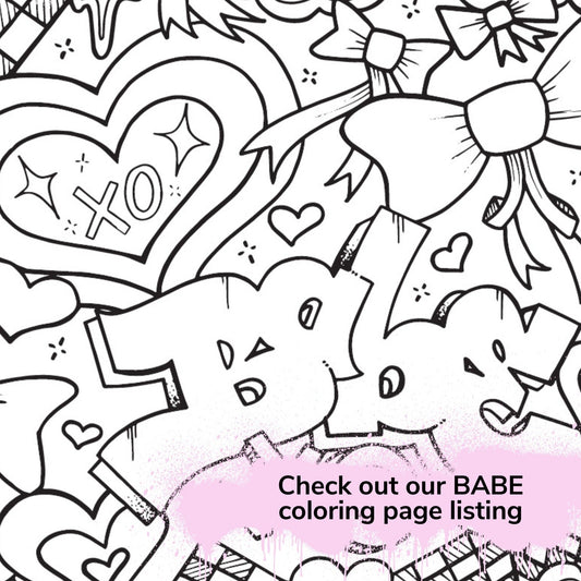 Valentines BABE Graffiti Coloring Page - Instant Download