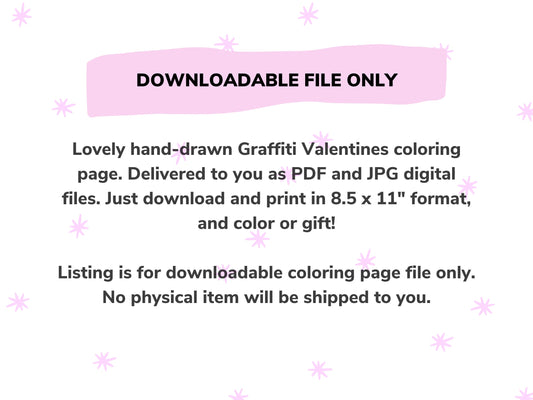Valentines LOVE Graffiti Coloring Page - Instant Download