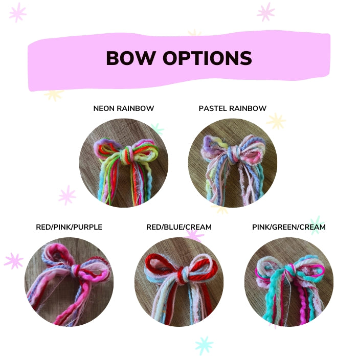 - BOW OPTIONS: Select your color set from the dropdown list. See pics for examples.